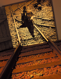 大好きな線路をつたって故郷三沢に帰った寺山をイメージ。