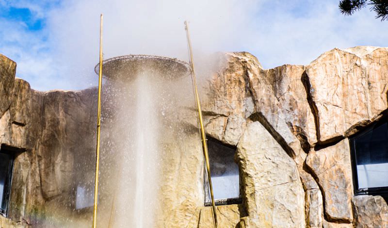 ロイヤルシティ鹿部リゾートが広がる北海道鹿部町では、周期的に地上へと溫泉や水蒸気が噴き出す「間歇泉(かんけつせん)」が見られます。「しかべ間歇泉」は、1924年(大正13年)溫泉の試掘中に偶然発見されたもので、高さ15mを超えて噴き上げる溫泉の溫度は約100℃。10~15分に1回噴き上がる様は、発見された約100年前から変わらない光景です。「道の駅しかべ間歇泉公園」は、その名のとおり間歇泉のある道の駅。道路に飛沫が飛ばないように対策された溫泉の噴水を、足湯に浸かりながら眺めることができます。