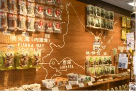 道の駅の向かいに広がる太平洋內浦灣は、海中のミネラルが豊富な好漁場。昆布やホタテ、タラコなどの鹿部の特産物も、佃煮シリーズ「ごはんにあうしかべ」をはじめ、さまざまな形で加工?商品化されています。年に數(shù)回しか漁が行われない貴重な「白口浜真昆布」とカツオの合わせだしでつくった濃縮タイプの「根昆布だし」は、週末には1日100本以上販売される看板商品。これらの商品はいずれも、地元鹿部町や近隣の水産會社や米穀店に監(jiān)修協(xié)力を得たもので、地域の活性化につながる仕組みづくりがしっかりなされています。しかも、他店舗などでの取り扱いはなく、まさに「ここでしか買えない逸品」ばかりです。