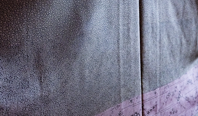 形幸の江戸小紋は、須賀川市のお店と、形幸の技に信頼を寄せ、80年以上取引がある東京の呉服問(wèn)屋でしかお目にかかれません。TVや雑誌に登場(chǎng)する江戸小紋に形幸の名前は出てきませんが、その緻密さと美しさから、形幸さんにたどり著く著物通の方もいるとか。「柄が緻密すぎるので、(作業(yè)工程を見(jiàn)られるまで)手作業(yè)だと信じてもらえないんです」と苦笑いを浮かべる渡辺さん親子。それでも、型紙の文様をもっと細(xì)かく見(jiàn)えるように、今も試行錯(cuò)誤を続けているといいます。