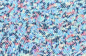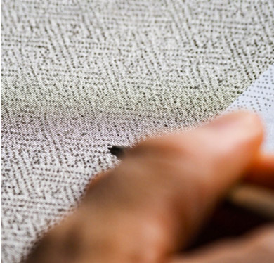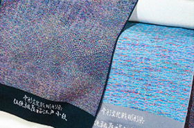 『どこもしていないこと』をする。形幸の精神は、違う形でも続いています。江戸小紋は通常、単色で染めるものですが、複數(shù)色を重ねる小紋をつくっているのも、渡辺さんと兄弟弟子のみ。一反にも及ぶ生地に、1ミリ以下の點(diǎn)描を、しかも何度も色を重ねる…。呼吸を忘れるような工程が続きますが、手仕事を続ける渡辺さんたちにしか生み出せない貴重な小紋が仕上がります。他にも、金糸などで織った壽光織(じゅこうおり)に江戸小紋を染めたり、反物の裏表に染めを行ったりと、今も新たな挑戦が続いています。