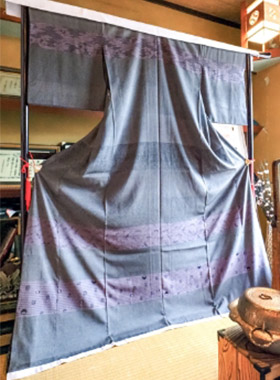 福島県の中部にあたる、福島県中通り。須賀川市で、100年以上にわたり『江戸小紋』を染めている工房があります?!航瓚跣〖y』は柄が非常に小さく、一見(jiàn)無(wú)地のように見(jiàn)える技法のことで、広く普及したのは江戸時(shí)代初期。武士の禮裝である裃(かみしも)が由來(lái)といわれています。參勤交代で江戸に集まる武士たちは自分の藩を示す「定め柄」を裃に用いていましたが、幕府の令によって派手な裃を禁止されたことから、武士たちは競(jìng)い合うように微細(xì)な柄を求めるようになり、江戸小紋の技法が確立していきました。?鮫の皮のような半円形を重ねた『鮫小紋』、點(diǎn)の縦橫が直角に交差し、等間隔に並べられた『通し小紋』、點(diǎn)の並びが斜めに交差してある『行儀小紋』の柄は、『江戸小紋三役』といわれる代表的な柄。柄や色の合わせ方次第で、シーンを選ばず著回すことができるため、改まった行事にも、街著にも使える著物として根強(qiáng)い人気を誇ります。