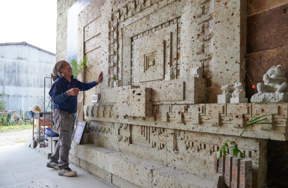 渡邉さんの工房にある、帝國(guó)ホテルの許可を得て再現(xiàn)された現(xiàn)帝國(guó)ホテルのレリーフアートの一部。手刻みで完成させるレリーフアートのオーダーメイドにも対応している