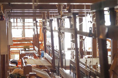 気の遠くなるような作業を積み重ねながらつくられるホームスパンは、実直と評される巖手県の人々の県民性と合っていたのでしょうか。巖手県では年間27,000mものホームスパンが生産され、全國の生産額の約8割を占めています。盛岡市を拠點とするホームスパンの製造會社「みちのくあかね會」は、戦後、夫を失った女性が生活の糧を生み出すための授産施設として始まりました。1958年(昭和33年)、簿記や工蕓(ホームスパン)などの技術が習得できる今でいう職業訓練校『盛岡婦人共同作業場』が発足され、そこで製造されたホームスパン製品を販売するために株式會社化されました。