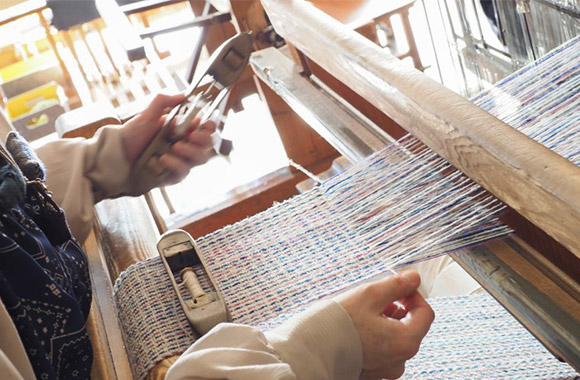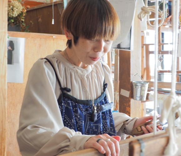 2022年(令和4年)に、クラウドファンディングを利用して移転した現在の作業場は、もともと酒造會社が経営するレストランでした。木がふんだんに使われた內観に、長年大切に使われている織機や紡糸機、棚などの家具がよく馴染んで、穏やかな雰囲気に包まれています。「クラウドファンディングには、九州や関西など、全國から100人近くの方々が協力していただきました」と語るのは、織り手兼事務方の中村美穂さん。「作業だけをしているときは意識していませんでしたが、こうして応援してくれる人が全國にいることが実感できました。これからもより良いものをお屆けできるといいなと思っています」