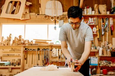 小國の森に住み、小國杉で家具をつくる生活も4年が過ぎたおふたり。當初は寂しかったそうですが、自然や人とのつながりを感じるようになったと、當房さんは語ります。「顔を知っている木こりさんたちが育てた小國杉を、顔を知っている製材所の方が加工する。それを家具にする私たちは、小國の森とお客さまとのつながりをつくる役割なのかなと。都會で家具をつくっていたら、そんなことは感じなかったと思います」。人や自然とつながりながらつくられる、使い手と添い遂げる家具。これからも小國の森から生まれていきます。
