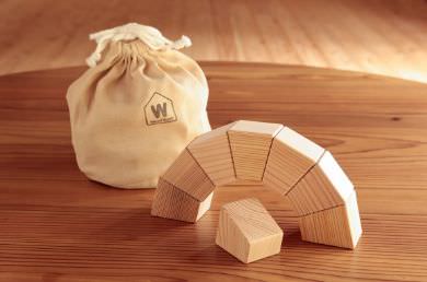 寒暖差の激しい環境で育った小國杉は、木目の締まり方が冬と夏で大幅に違うため、通常なら機械で行う作業もすべて手作業で行われます。家具づくりには、「組み接ぎ」と呼ばれる伝統技法が用いられ、釘などの金具は不使用。木の経年変化や、使ううちに課せられる荷重にも備えた細工を施すなど、使い手への気遣いが宿ります。かける木工舎の家具は阿蘇くまもと空港の出発ロビーや町內のカフェなどでも使われており、座り心地や使い心地を體感した人からの問い合わせが多いとか。小國町の依頼で満1歳を迎える子どもたちに贈られる積み木「wood start」も小國杉で制作。舊國鉄宮原線遊歩道に殘る「幸野川橋梁」をオマージュしたアーチ型の積み木も、ここで生まれた作品です。