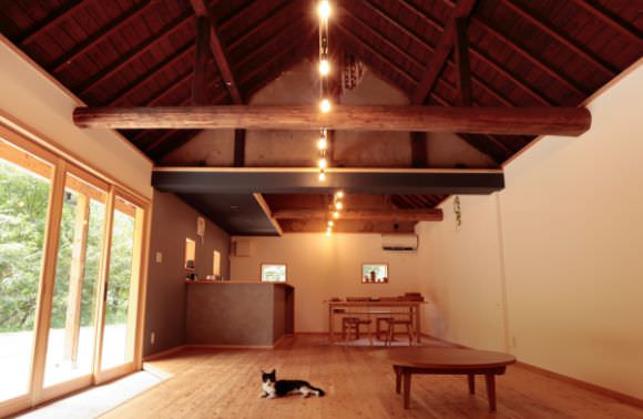 椎茸の乾燥小屋を改裝したギャラリー兼ワークショップスペース。ワークショップは1日1組限定