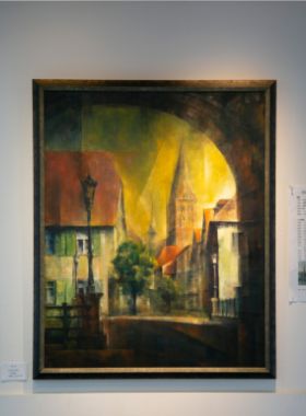 一方、成さんが描くのは、ヨーロッパの町並みをモチーフにした幻想的な油絵です。日本とドイツの大學(xué)で長年學(xué)んだ建築や都市計畫の知識を土臺に、シンプルな直線で光と影が印象的に描かれ、観る人の想像力を駆り立てます。親子とはいえ、ジャンルも作風も全く異なる蕓術(shù)家同士。同じ空間に飾ると不思議な一體感を感じさせると、來場者からも評判です。