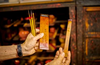 (寫真左下)制作途中の塗り箸。漆が垂れないようにタイマーで10?15分おきに反転させている