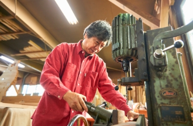ユーモアと機能性を両立させた実用家具を手がける、木工職人の和山忠吉さん