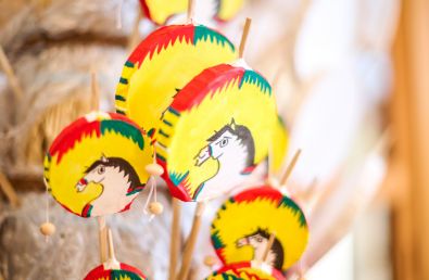 舊暦の1月18日を過ぎて行われる鹿児島神宮の「初午祭」は、約470年の歴史を數える鹿児島県の三大行事。毎年數萬人規模の參拝客でにぎわいます。いちばんの見どころは、煌びやかに飾られた馬が踴り連と一緒に鳴り物に合わせて踴るように歩く「鈴懸馬踴り」。鈴や花飾りと一緒に、豆太鼓の初鼓(ぽんぱち)もたくさん飾られます。この「ぽんぱち」は、五穀豊穣、家內安全、畜産奨勵、商売繁盛のほか、子どもの健やかな成長や厄払いを願うもので、初午祭の縁日で神札やお守り代わりに新調するのが習わし。薩摩川內市で春に行われている「早馬祭」でも、この「ぽんぱち」は欠かせないため、工房みやじの3人も3月末までつくり続けます。