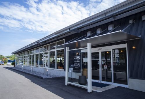 「おいしいカキを年中食べたい」というリクエストに応え、2020年(令和2年)11月にオープンした『KITSUKI TERRACE』は、昔ながらのカキ小屋のイメージを払拭させる、おしゃれな海鮮バーベキューレストラン??拖?08席を有する広々とした空間で、陽光が水面をきらめく守江灣を一望できるそのロケーションに、思わず息をのみます。
