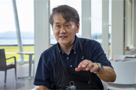 「杵築が國東半島の観光の拠點になればと願い、手づくりで時間をかけてつくってきました」と語るのは、擔當の都甲泰光さん。窓の向こうに広がる芝生のガーデンも、海に面してしつらえた『夕陽のデッキ』も、都甲さんをはじめスタッフのみなさんが手がけたスペース。サップやシーカヤック體験も受付中です