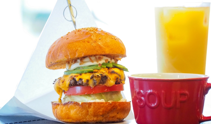 『會(huì)津美人(べっぴん)バーガー』は、パテ1枚と3種のチーズ、アボカド、レタス、トマトを赤瓦バンズに挾んだ人気の一品。高さ約15cmと、インパクトのある見た目とは違い、野菜はジューシーで、パテもあっさりとしています。『鶴ヶ城バーガー』や『磐梯山バーガー』など、高さを誇る名所にちなんだものは、2枚のパテで存在感をアピール。英語の「クレイジー」に親しみを込めた會(huì)津の方言『おんつぁげすバーガー』は、超粗挽きの特注パテを3枚も重ねたチャレンジングな一品です。