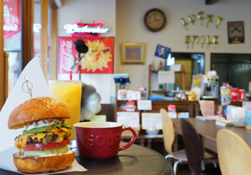 外観のイメージは西部劇。ハンバーガーが完成するまでの間、テーブルの上のおもちゃで遊んだり、昔懐かしいLPレコードや洋畫のパンフレットを眺めたりする時(shí)間も楽しめます。ちなみに、ドリンクのサイズも「五色沼(Lサイズ)」「豬苗代湖(Lサイズの2倍)」。こちらも會(huì)津らしいネーミングが冴えています