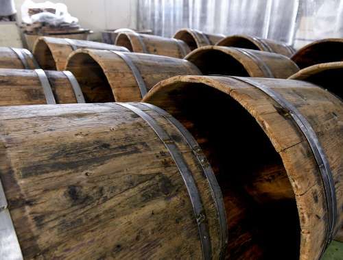 (寫真左)約80年間現役の杉樽。往年は道內で獲れたいかで、工場中の樽がいっぱいになったとか