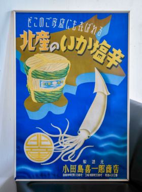(寫真右)寫真が趣味だった先代がデザインしたポスター(當時は「小田島喜一郎商店」)