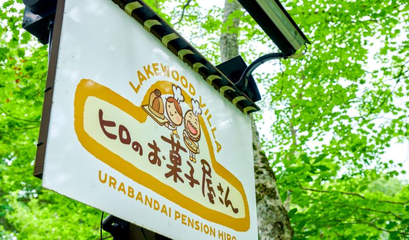 ロイヤルシティ裏磐梯リゾートから、車で北に約10分。大小さまざまな湖沼が點在する磐梯高原の中で、少し奧まった靜かな森の周辺は「レイクウッドエリア」と呼ばれ、旅行客向けのペンションが軒を連ねています。「ヒロのお菓子屋さん」も、もともと先代がペンションからスタートした手づくり菓子のお店。木立が続く細い道を奧へ進むと、森の中のカフェにたどり著きます。