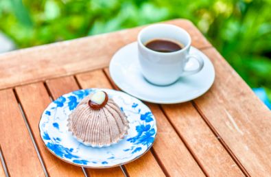 ここで味わえるのは、地元の食材を使った自家製スイーツ。先代からのレシピを受け継いだ「花豆もんぶらん」は北塩原村の特産品、花豆を使ったモンブランで、栗のモンブランのように、花豆をペーストにしたりトッピングにしたりして優しい味わいに。花豆は「花嫁ささげ」ともいわれ、標高800m以上の高原でなければ栽培は難しく、地元では保存食としても食べられてきた歴史があります。もうひとつは、會津の溫泉水でつくられる「山塩」を使った、その名も「がとー塩っこら」。山塩のまろやかさが甘味に奧行きを感じさせるオリジナルスイーツ。自家焙煎のコーヒーやオリジナルハーブティーとともに楽しめます。