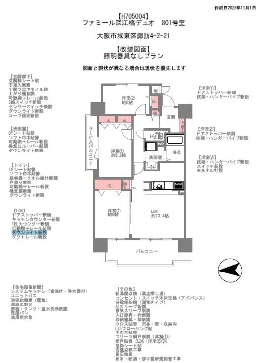 - フルリノベーション!2026年2月14日完成予定!大阪メトロ中央線深江橋駅徒歩2分、ペット飼育可(規約有)、8階?角部屋、玄関ポーチ?サービスバルコニー有図面と現狀が異なる場合は現狀を優先します。