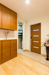 ショールームで気に入られたシューズクロークを設(shè)けた玄関。