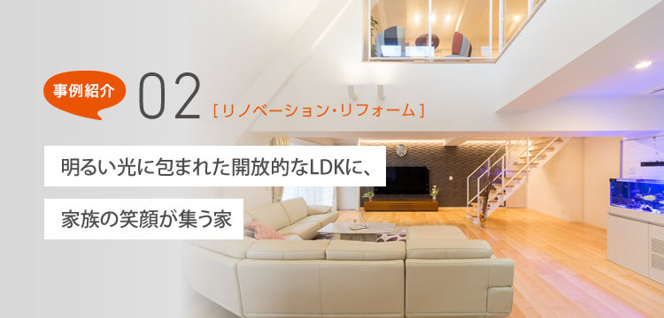 事例紹介02[リノベーション?リフォーム]明るい光に包まれた開放的なLDKに、家族の笑顔が集う家