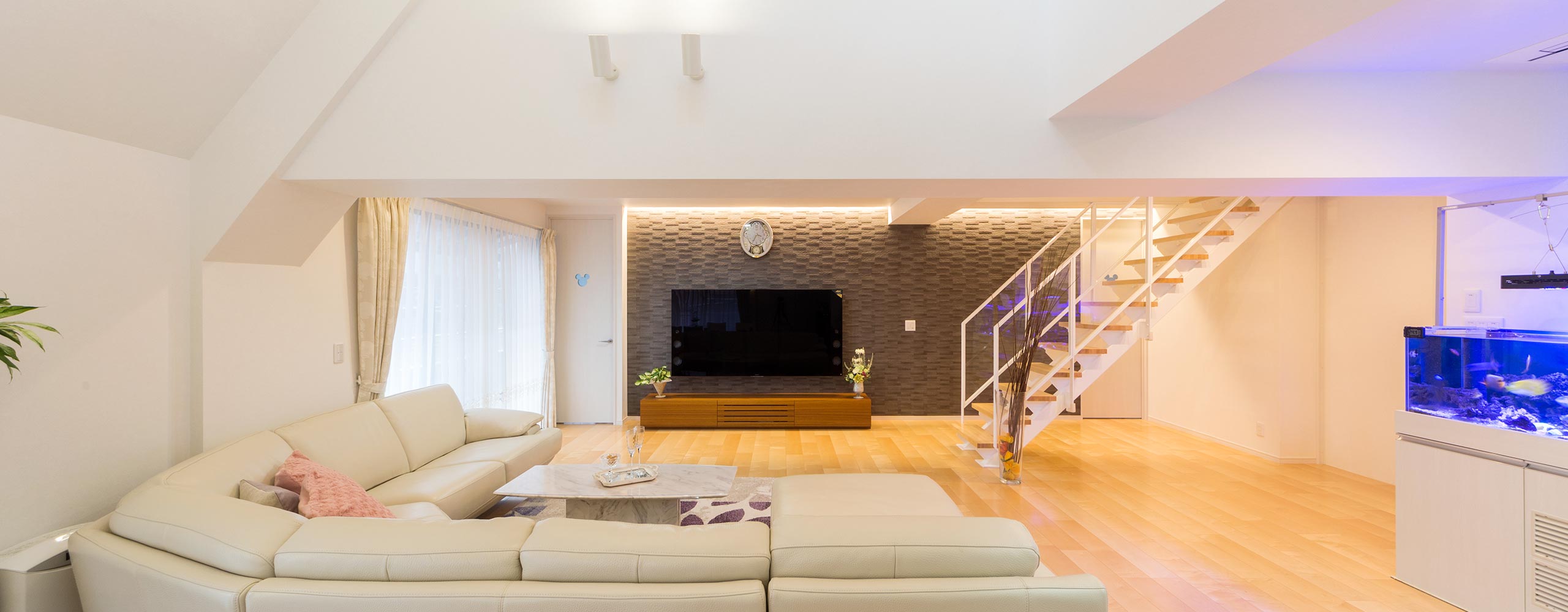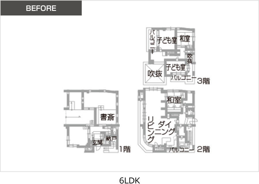 お子さまの成長でマンションが手狹になったことから、リフォームを前提にRC造の3階建て住宅を購入し、住み替えをされたC様。和室中心の間取りをスケルトンリフォームで一新されたお住まいは、見違える明るさと開放感です。既存の吹き抜けをうまく生かした2階のリビングダイニングは、階段室を取り込んで空間を大きく広げ、スケルトン階段で3階とオシャレにつなぎました。そして吹き抜けを見下ろす3階は、ホテルラウンジのような雰囲気に。さらに1階には念願だったシアタールームも実現(xiàn)。「工夫を凝らしたきめ細(xì)やかなプランニングで、私たちの好みや生活スタイルに合った住まいに再生してもらえました」とお喜びです。