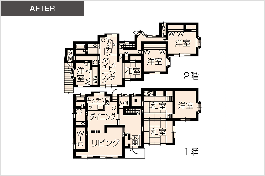 多かった和室をなくして、両世帯ともに広々と気持ちよく過ごせるLDKへ