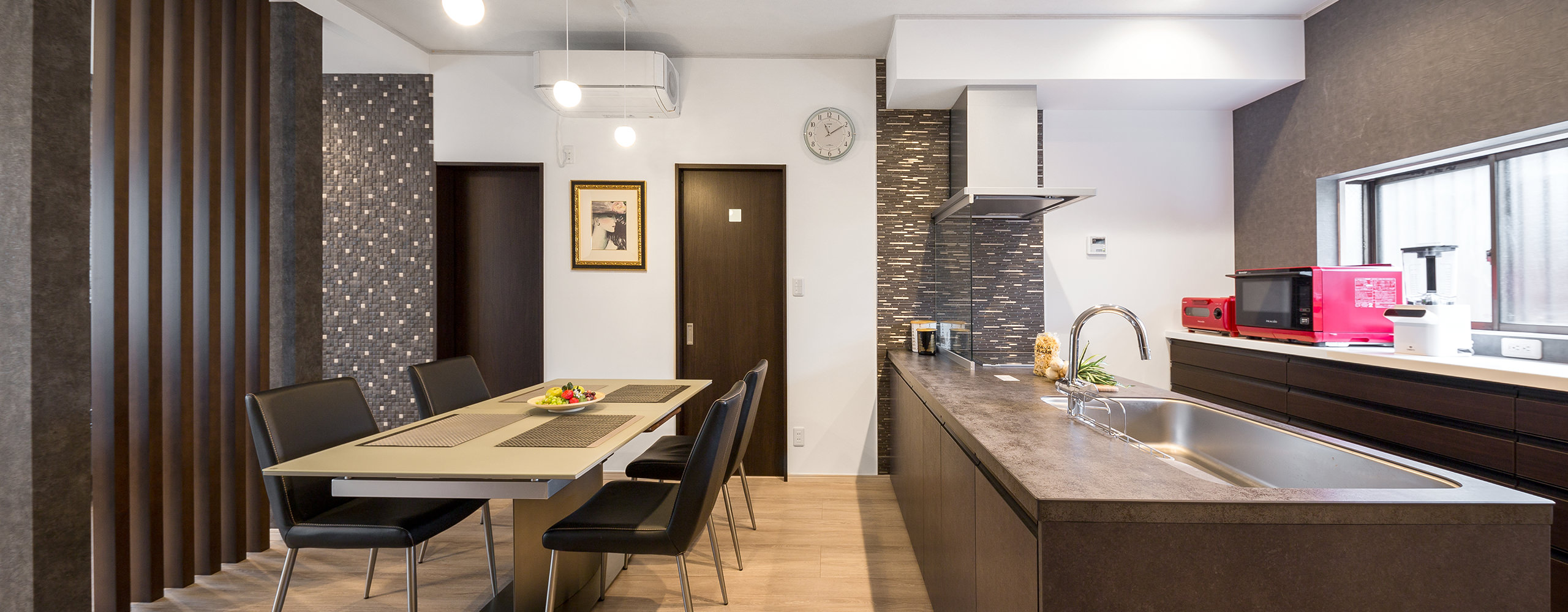 ご家族が集うのにふさわしい大空間を葉え、理想通りのくつろげるシックな住まいへ