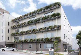 愛知県小牧市に立地する愛知北支店は2011年12月に竣工しました。この環境配慮型オフィスでは新たな取り組みとしてLED導光板照明等を利用することで、1990年當時の建築物と比べて1年間のCO2排出量を54.7%削減できる計畫とし、社員による「省エネ改善委員會」を通じて運用改善を重ねた結果、初年度のCO2排出量を60.6%削減することができました。また、當社グループである大和リースの商品「フレーム式壁面緑化」も導入しています。