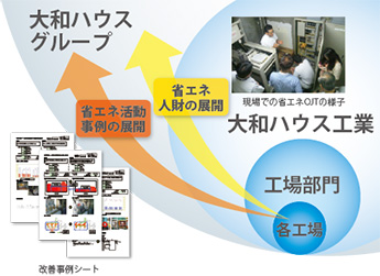 當社では、CGO(環境擔當役員)のリーダーシップのもと、生産部門と開発?設計部門が連攜して自社工場の省エネ活動を推進、商品化につなげました。