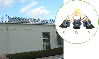 また、産業用としては日本初となる発電(追尾集光型太陽光発電)と集熱を同時併用したハイブリッドシステム※1を導入、太陽エネルギーから電気と溫水を同時につくる最新技術です。