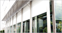建物に入る熱量の71%は窓からのもの。外付けロールスクリーンは中付けより効率的に日射を遮り、メッシュ地に散水することで冷房効率も高まります。