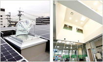自然光を照明に利用する技術。自然光を屋上から1階に取り込み、直接、照明の一部として利用します。自然光の優しい光は、目への負擔も軽減します。