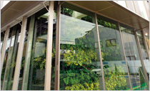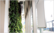 ダブルスキン內の壁面を緑化。室內に取り込んだ風によって緑がそよぐ様子をガラス越しに眺められます。空気清浄効果やリラックス効果も期待されます。