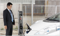 太陽光発電で得られる電力を電気自動車の充電にも用いて、車両からのCO2排出量をゼロにします。災害時などには車載充電器の電力を店舗內で使えます。