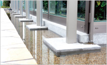 ファサード外側にビオトープを設け、ヒートアイランド現象の低減、景観向上、防犯に役立てています。また、雨水をここに集め散水に利用しています。