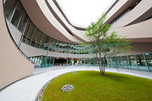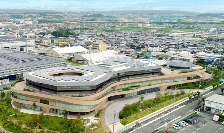「大和ハウスグループ みらい価値共創センター(愛稱:コトクリエ)」は、世代を超えてあらゆる人が集い、共に価値を生みだす場所として開所。建物のデザインは、大和ハウス工業創業者のDNAを継承する意思を表す「らせん構造」をイメージした內部構造と、「21世紀は『風と太陽と水』を事業化すべき」という言葉を3つのゾーニングで表現しています。また、「風?太陽?水」の力を使った先進の省エネ?創エネ設備を搭載し、ZEB Readyを達成するとともに、5つの認証を取得しています。