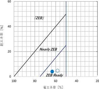 ZEBの狀況(〇:設計値、●:実績値)
