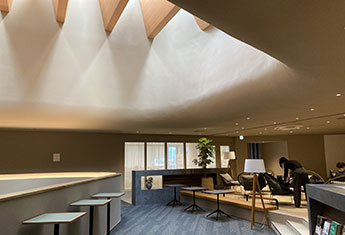 エネルギーに満ち溢れたグローバルな対話の會所。シームレスに上下階をつなぐフロア構成。