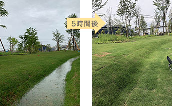 土壌の浸透率が高いため、降雨後5時間後には雨水が浸透している。