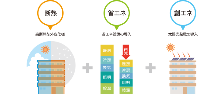 ZEH-Mとは、高斷熱や省エネ設(shè)備の導(dǎo)入による省エネ性能の向上と、太陽(yáng)光発電などによるエネルギーの創(chuàng)出により、快適な室內(nèi)環(huán)境を?qū)g現(xiàn)しながら年間の一次エネルギー消費(fèi)量の収支をゼロとすることを目指したマンションです。部屋間の溫度差が小さくなることで、快適かつ健康に過(guò)ごせるなどのメリットが挙げられます。