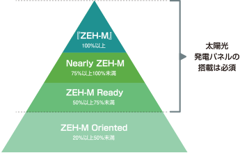 ZEH-Mは、一次エネルギー消費(fèi)削減率に応じて4つの區(qū)分が定められています。また、ZEH-M Ready以上は太陽(yáng)光発電パネルなど再生可能エネルギー発電システムの搭載が必須となっています。
