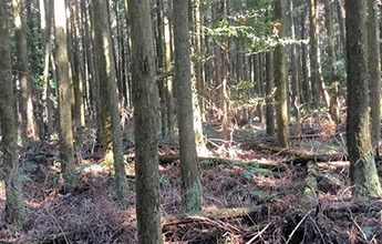 木が痩せて薄暗く、地面にはシダ類がまばらに生えているなど、荒廃して薄暗くなっていたスギ?ヒノキ等の針葉樹林の約50%を間伐し、地表まで日光が屆くようにしました。その後のモニタリング調査の結果、シオンやナガミノツルキケマン等、地中に眠っていた草原性の植物が多數出現。今後は、雑木林の萌芽を促すことで、數十年かけて徐々に人工林から針広混交林に転換していく計畫です。