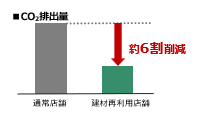 資材製造から建物が完成するまでのCO2排出量は、通常店舗と比較して約6割削減見込み。
