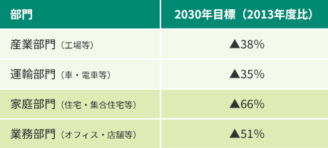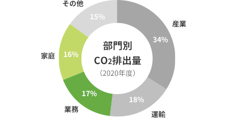 國の地球溫暖化対策計畫では、部門別の溫室効果ガス削減目標値も示されました。當社グループの事業は主に「家庭部門」「業務部門」に関連しており、2030年までに、家庭部門では66%、業務部門においては51%(いずれも2013年度比)の削減目標が設定されています。この2つの部門は、2020年度の日本の溫室効果ガス排出量の約3割を占めているため、これらの部門で著実に排出量を削減することが、全體の目標達成のために重要となります。しかし現狀のままでは、週の半分もエネルギーを使えない計算になります。