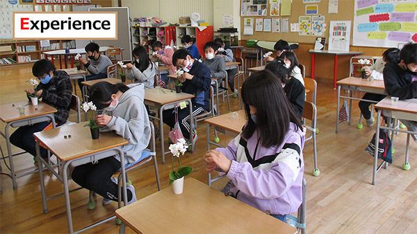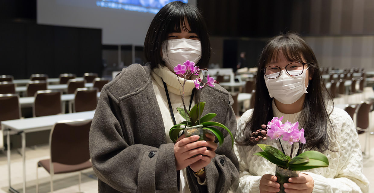 COCOLANを通じて次世代との交流も広がっています。近隣の大學生にとって、ココランハウスは地域課題を発見?探求?解決する“教育=“Education”の場に。また、三木市の全小學校の卒業式ではCOCOLANを進呈。昨年は式に出席できない在校生たちがCOCOLANのアレンジメントに挑戦し、花に觸れ、お祝いの気持ちを贈る“経験=Experience”を通して、命を慈しむ気持ち、思いやりの心を育みました。さらにフラワーロス?ゼロチャレンジとして、出荷できなかったCOCOLANを、切り花や押し花として商品化する「COCOLAN CYCLE SYSTEM」も構築しています。