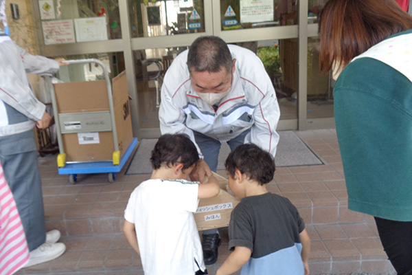 2つ目として、工場に隣接する乳児院の避難訓練をオブザーバーとしてサポートしました。これまでにも工場を緊急避難場所にする取り決めや、技能訓練でつくった木製ベンチの提供などを行っており、今後も交流を継続したいと考えています。
