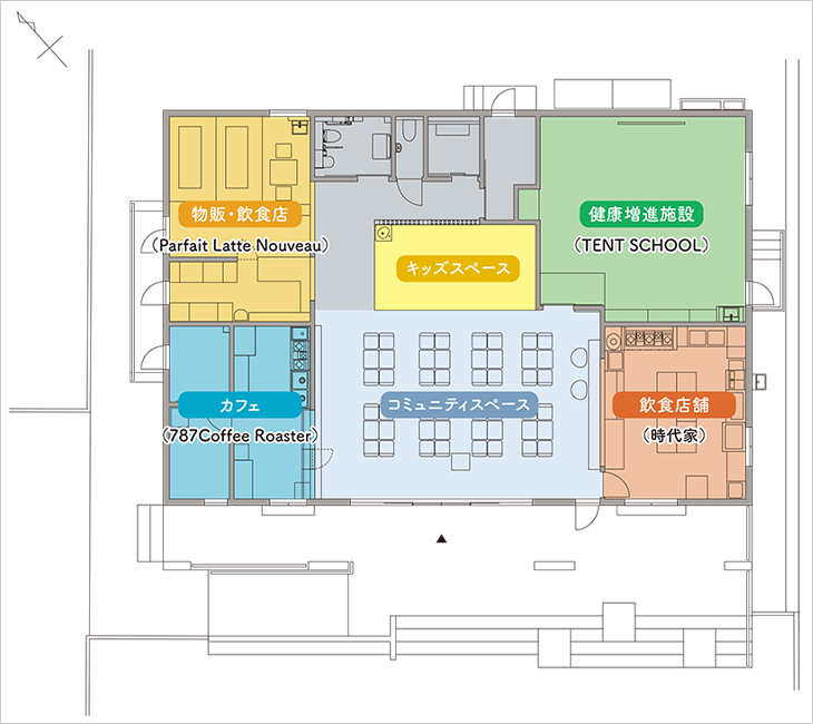 また、施設內には「TENT SCHOOL」という貸しスペースがあります。ここでは、ヨガやダンスなどの健康レッスンのほか、フラワーアレンジメントやロボット教室などさまざまなジャンルのスクールが地域の事業者によって開校されています。